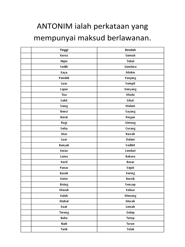 Namun kerana pelbagai keadaan banyak orang lupa makna konsep ini atau. Perkataan ini tidak asing lagi bagi hampir semua orang dari sekolah. Untuk menjawab pertanyaan seputar antonim yuk kita simak dulu pembahasan.